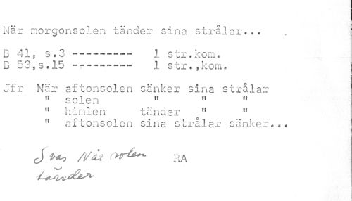 //// När morgonsolen tänder sina strålar... . j //// B 41, s.3 ---- i str.kom. //// B 53,s.l5 --- 1 str.,kom. //// Jfr När aftonsolen sänker sina strålar //// »i solen " rf " //// " himlen tänder " 11 //// 11 aftonsolen sina strålar sänker... //// J u* /IftLt PlA ////