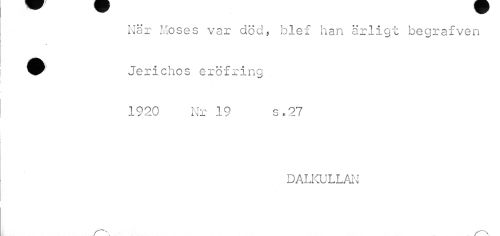 //// Kär Moses var död, blef han ärligt begrafven ^r Jerichos eröfring . //// 1920 Nr 19 s.27 //// DALKULLAN ////