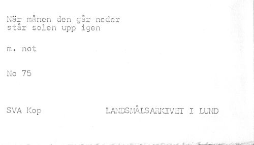 //// När månen den går neder står solen upp igen //// m. not No 75 //// SVA K°P LANDSMÅLSARKIVET I LUND //// ¦. .. ^ué* i HH m m** *, j^^Jiiu s- ni täjAwittoS ////