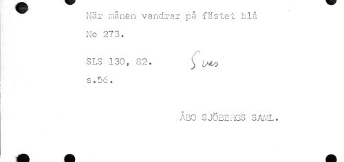 //// När manen vandrar på fästet blå No 273. //// SLS 130, 82. ^ //// s. 56« //// ÅBO SJÖBERGS SAML. //// \ ////
