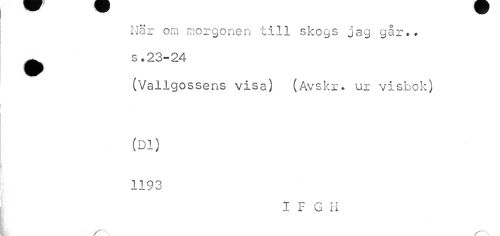 //// När om morgonen t5.ll skogs jag går.. ^ s.23-24 //// (Vallgossens visa) (Avskr. ur visbok) //// (Dl) 1193 //// I F G II ////