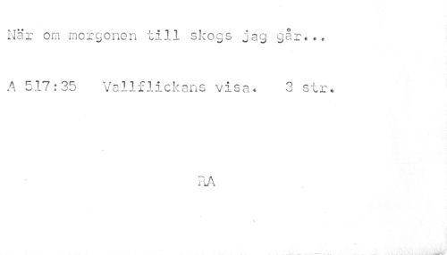 //// Nar om morgonen till skogs jag går... A 517:35 Vallflickans visa* 3 str* //// i //// HA ////
