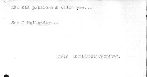 //// När oss passionens vilda yra.** //// ' i i i //// Se: O Walländer».. //// KB:s SKILLINGTRYCKSREG. ////