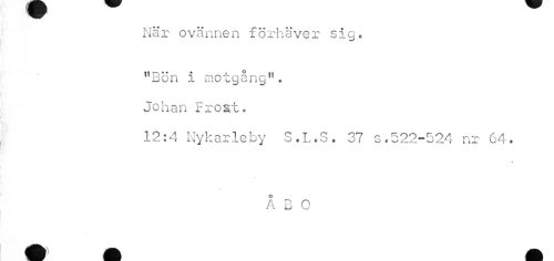 //// När ovännen förhäver sig. //// "Bön i motgång". Johan Frost. //// 12:4 Nykarleby S.L.S. 37 s,522-524 nr 64. //// ÅBO ////