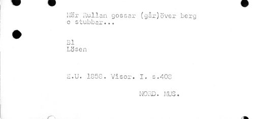 //// När Rullan gossar (går)över berg o stubbar*.. //// bl //// T 4 f _ //// -wösen //// E.U. 1858. Visor. I. s.403 //// NORD. MÖS. //// v A ////
