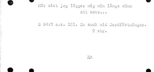 //// w När sist jag lägger mig min långa sömn //// att sova.»» //// * //// B 64:2 a#s. 101» En suck vid Jordfästningar. //// 2 str. //// ¦ RA ////