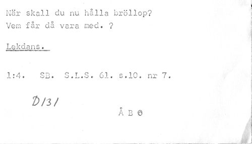 //// ¦ //// » //// När skall du nu hålla bröllop? Vem får då vara med. ? //// Lekdans. //// i i //// 1:4. SB. S.L.S. 61. s.10. nr 7, //// Dm //// A B © //// a , ////