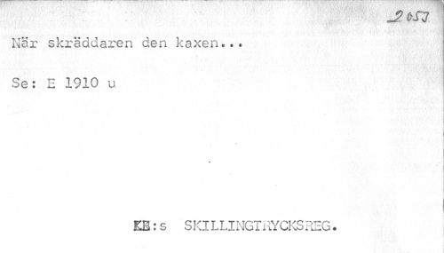 //// v /V i 7 cw^ v ^ V //// När skräddaren den käxen... //// ¦ //// Se: E 1910 u //// . //// . i //// EE:s SKILLINGTRYCKSREG. j ////