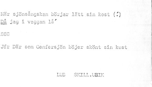 //// När sjönsångskan börjar lätt sin kost (?) Da jag i vaggan lå' //// ooo //// JUO //// \ //// Jfr Där sora Genfersjön böjer skönt sin kust //// LUB SKILL.UBIK ////
