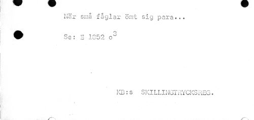//// När små fåglar ömt sig para... W Se: 2 1852 o3 //// y //// KB: s S KIL1,1 NGT RYCKS REG. //// % " ~ * r //// i • , ////
