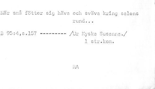 //// 1 //// Mär små fötter sig häva och sväva kring salens //// rund.,. //// 3 95:4,s.l57 ------- /Ur Kyska Susanna. //// /1 str.kom. //// RA ////