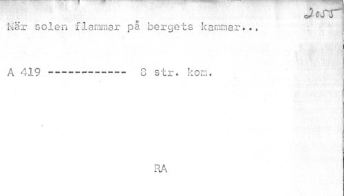 //// JfcTT] //// Nar solen flammar på bergets kammar... //// i f\v & J-SWf i »V //// A 419------- 8 str. kom. //// % //// RA ////