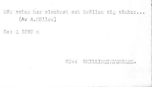//// När solen har slocknat och kvällen sic sänker... //// (Av A.Möller) //// Se: E 1893 m //// i //// t I //// f //// KB:s SKILLINGTRYCKSREG. //// 1 //// i ¦ //// V //// i //// i : //// ) i //// f ////
