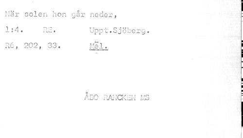 //// Här solen hon går neder, : //// 1:4. RE. Uppt.S j öberg. //// R6f 202, 33. Mel. //// ri //// ÅDO RANCKHN MS - ////