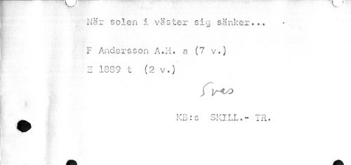 //// När solen i väster sig sänker... //// F Andersson A.H. a (7 v.) 2 1889 t (2 v.) //// ^^ Kjb • s SKILL e — i R • ////