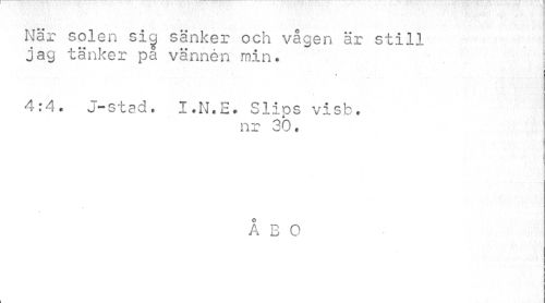//// När solen sig sänker och vågen är still jag tänker pa vännén rnin. //// » //// \ //// 4:4. J-stad. I.N.E. Slips visb. //// nr 30. //// o //// A E O ////