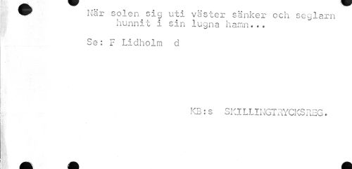 //// När solen sig uti väster sänker och seglarn //// hunnit i sin lugna hamn... //// Se: F Lidholm d //// KB: s Sia LLI NGT RYCKS REG. //// A A ////