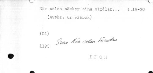 //// När solen sänker sina strålar... s.19-20 (Avskr. ur visbok) //// (Dl) 1192 ////