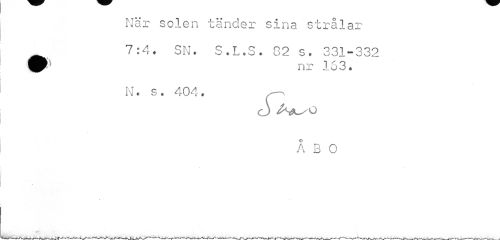 //// Här solen tänder sina strålar 7:4. SN. S.L.S. 82 s. 331-332 //// nr 163. //// N t s. 404. //// cj AÄ^O //// ÅBO ////