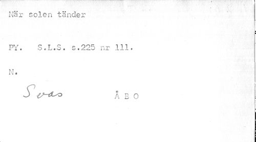 //// - //// När solen tänder //// ¦ ¦ //// PY. S . L. S . s. 225 nr .111. N. //// S i^-d^o A b o ////