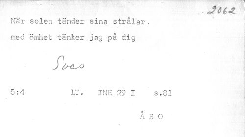 //// När solen tänder sina strålar . //// fy //// med ömhet tänker jag på dig //// Jfr-CLX) //// 5:4 LT. INE 29 I s.81 //// Å B O ////