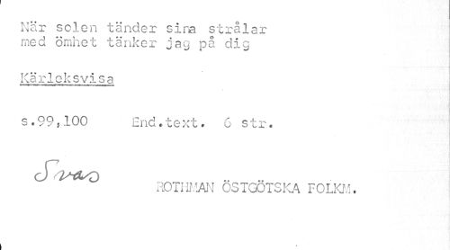 //// När selen tänder sira strålar med ömhet tänker jag på dig //// Kärleksvisa //// K nwi»'' ttt ni 11 mil---1 "•i -rr t t-hut iit—m n //// s.99,100 End.text. 6 str. //// c) //// ROTI U.!AN ÖSTGÖTSKA FOLKM. ////