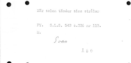 //// När solen tänder sina strålar //// PY. S.L.S. 542 s.226 nr 112. N. //// J .1/-&SO //// t //// ÅBO ////