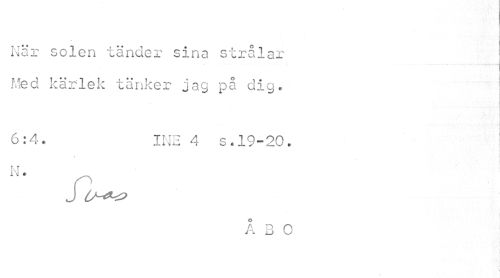 //// När solen tänder sina strålar Med kärlek tänker jag på dig. //// 6:4. INE 4 s.19-20. //// N- p //// O //// a p o A D U //// N ////