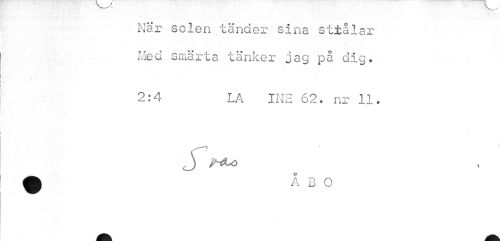 //// När solen tänder sina sttålar Med smärta tänker jag på dig. //// 2:4 LA INE 62. nr 11. ////