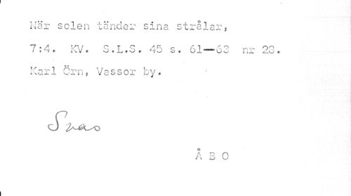 //// '' • T • . i ¦¦„ //// När selen tänder sina strålar, //// 7:4. KV. S.L.S. 45 s. 61 — 63 nr 23. Karl Örn, Vassor by. //// ... //// ¦ //// ÅBO ////