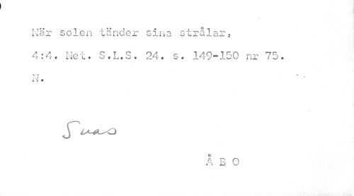 //// Kär solen tänder sina strålar, //// 4:4. Net. S.L.S. 24. s. 149-150 nr 75. //// A T //// i\j * * //// \ //// ^ iA-^L^a //// Å B O ////