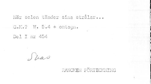 //// I //// I //// När solen tänder sina strålar... //// G.K.? W. 5.4 + omtagn. ; //// Del I nr 454 ! //// I //// I //// ! //// l //// RANCKEN FÖRTECKNING ////