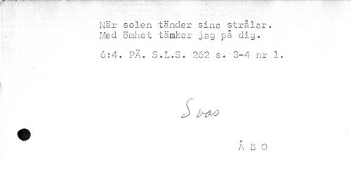 //// När solen tänder sina strålar* Med ömhet tänker jag på dig. //// 6:4. PÄ. S.L.S. 262 s. 3-4 nr 1. //// S PtPO //// Å 3 O ////