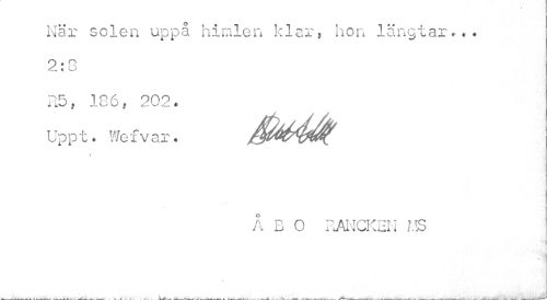//// När solen uppå himlen klar, hon längtar... o«n //// C t //// R5, 186, 202. //// Upp t. Wefvar. S^Mf //// ÅBO RANCKEN MS //// I //// .(i ¦V Jii.fl //// ___ . k___---. t,^-->. ^___ . ___i*. .. ___—.. --- . _ __ . ._ _ ^ _ ___ _ .---w—^ ////