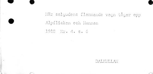 //// w v //// När solgudens flammande vagn tågar opp ^ Alpflickan och Nunnan //// 1Q "I n Nh- / o //// -L* y ..w w i \ ^ * r « o « //// DALKULLAN ////