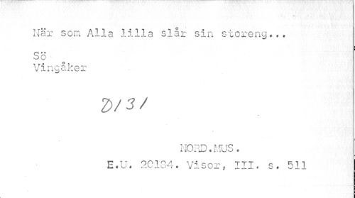 //// När som Alla lilla slår sin storeng... Sö • //// Vingåker //// Z)/3/ //// t //// NORD. MUS. E.U. 20184. Visor, III. s. 511 //// i ////