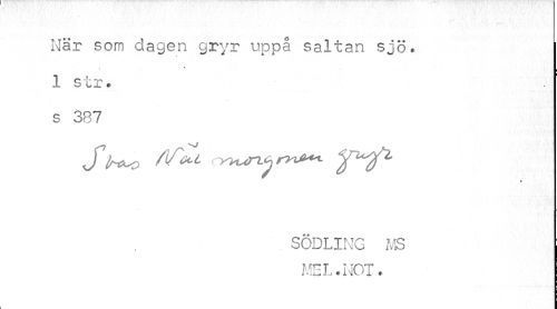 //// När som dagen gryr uppå saltan sjö. 1 str. s 387 //// • : //// SÖDLING MS MEL. NOT. ////