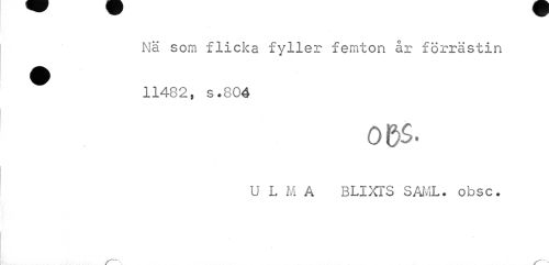 //// Nä som flicka fyller femton år förrästin 11482, s.804 //// U L M a BLIXTS SAML. obsc. ////