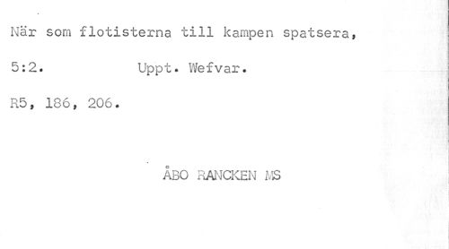 //// o //// När som flotisterna till kampen spatsera, 5:2. Uppt. Wefvar. //// R5, 186, 206. //// i //// ÅBO RANCKEN MS //// | ////