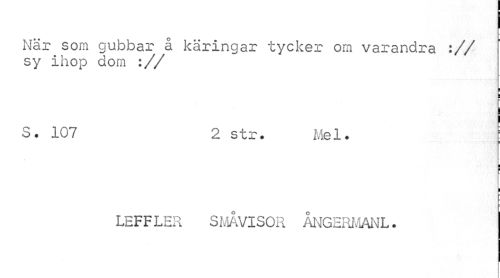 //// När som gubbar å käringar tycker om varandra :// sy ihop dom :// //// i //// i ¦ //// S. 107 2 str. Mel. //// I l //// LEFFLER SMAVISOR ÅNGERMANL. //// i ////