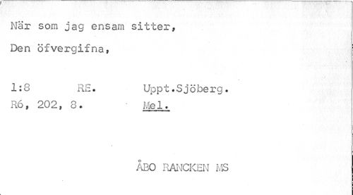 //// När som jag ensam sitter, Den öfvergifna, //// 1:8 RE. Uppt.Sjöberg. //// R6, 202, 8. Mel. //// ÅBO RANCKEN MS ////
