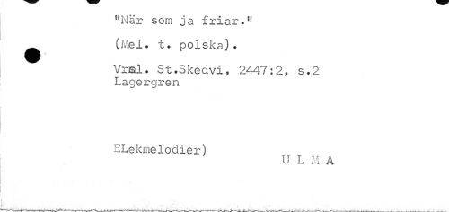 //// "När som ja friar." _ (Mel. t? polska). //// Vral. St.Skedvi, 2447:2, s.2 Lagergren //// ELekmelodier) //// U L m A ////