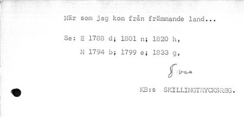//// ¦ • ' .; //// När som jag kom från främmande land... //// Se: E 1788 d; 1801 n; 1820 h, N 1794 b; 1799 e; 1833 g, //// A KB:s SKILLINGTRYCKSHEG. ////