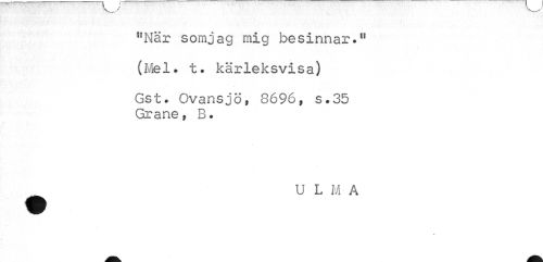 //// "När somjag mig besinnar." //// (Me 1. t. kärleksvisa) //// Gst. Ovansjö, 8696, s.35 Grane, B. //// U L M A //// k ////