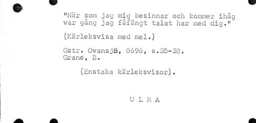 //// "När som jag mig besinnar och kommer ihåg var gång jag fåfängt talat har med dig.11 //// (Kärleksvisa med mel.) //// Gstr. Ovans jet* 8696, s. 35-38. Grane, B. //// (Enstaka kärleksvisor). //// ULHA ////