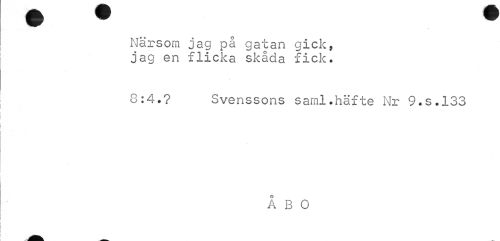 //// Närsom jag på gatan gick, jag en flicka skåda fick. //// 8:4.? Svenssons saml.häfte Nr 9.s.133 //// ÅBO ////