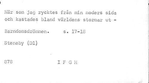 //// I //// När som jag rycktes från min moders sida och kastades bland världens stormar ut - //// 4 //// Barndomsdrömmen. s. 17-18 //// f //// Steneby (Dl) //// » //// 878 I F G H ////