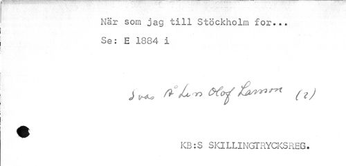 //// När som jag till Stockholm for... Se: E 1884 i //// Jm, rf ^ ^of^^ (z) //// KB:S SKILLINGTRYCKSREG. ////