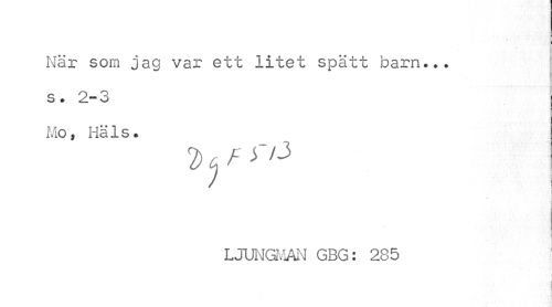 //// När som jag var ett litet spätt barn... s. 2-3 Mo, Häls. //// I //// LJUNGMAN GBG: 285 //// I j ////