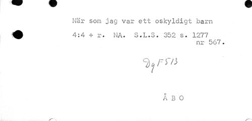 //// När som jag var ett oskyldigt barn //// ^ 4:4 * r* NA. S.L.S. 352 s. 1277 //// nr 567. //// O //// a b 0 ////